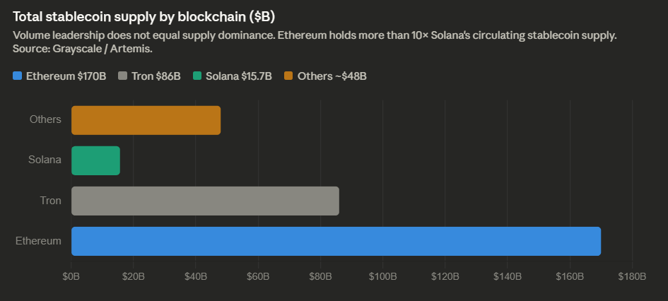 The shift, confirmed by Grayscale Investments citing Allium data and independently verified by Visa on-chain analytics, has prompted wide coverage — some of it accurate, some of it overstated.